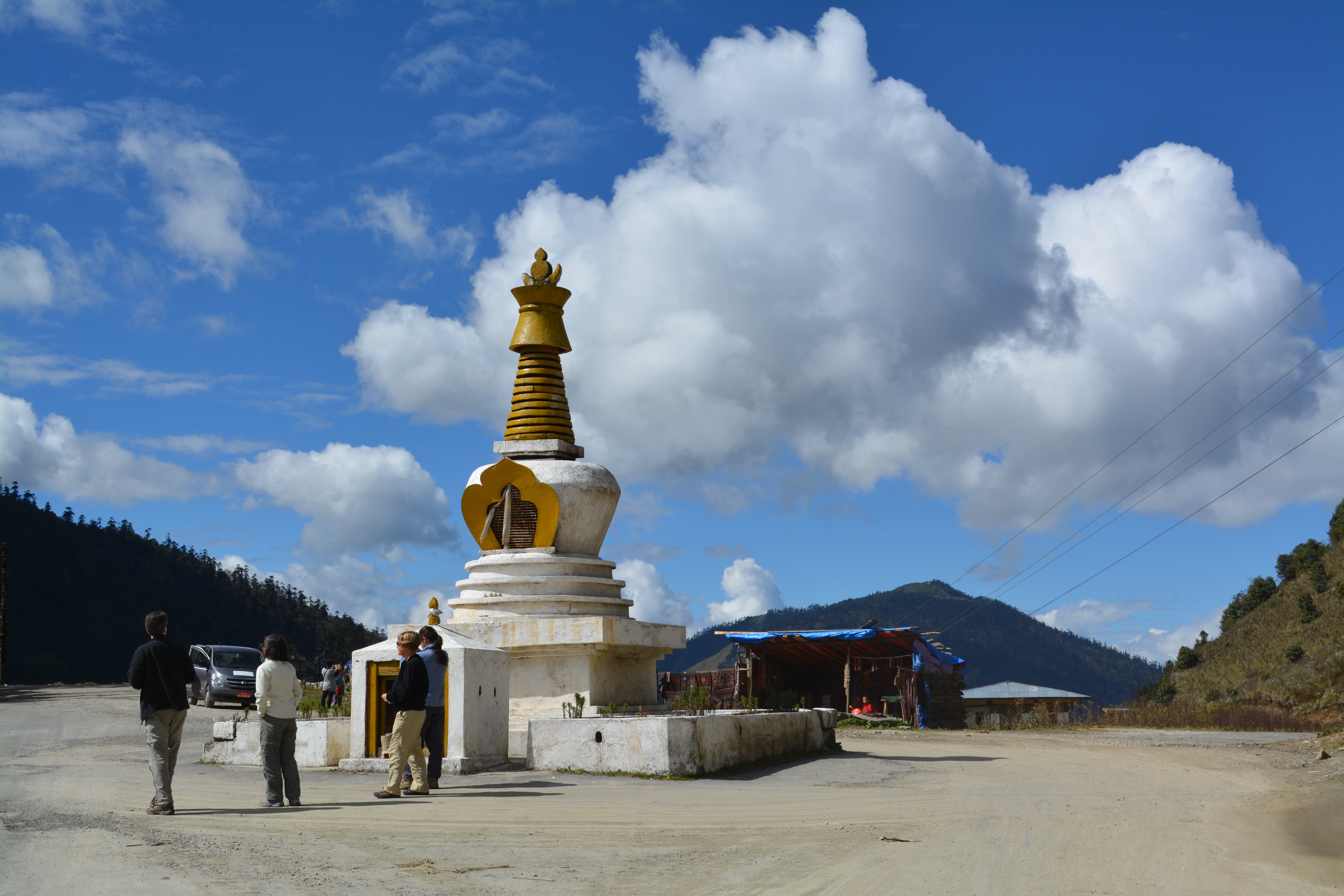 Chortens, also known as Stupas, are religious structures that dominate the Bhutanese landscape, predominantly on mountain tops, hills and mountain passes, crossroads and along the rivers. Often known as burial mounds, chortens are built in memory of eminent lamas and kings or to pin down evil spirits. They are also built to protect a place or a region against evil spirits that are potentially dangerous, such as landslides and accident prone areas.