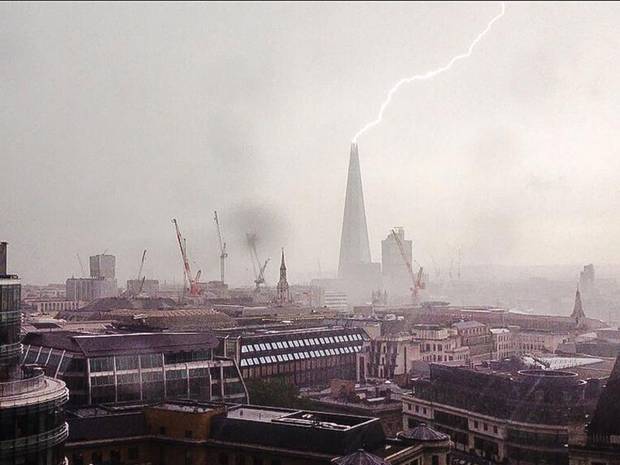 I am sure Mr. Rose did not realize how true that was! Apparently the Shard is actually a very good conductor, since lightning struck the top of this one-of-a-kind tower on Thursday May 22, 2014 during one of the city’s most severe rainstorms. This picture, which shows a single bolt hitting the top of the skyscraper was taken by Michael Hoskinson from his office across the Thames.