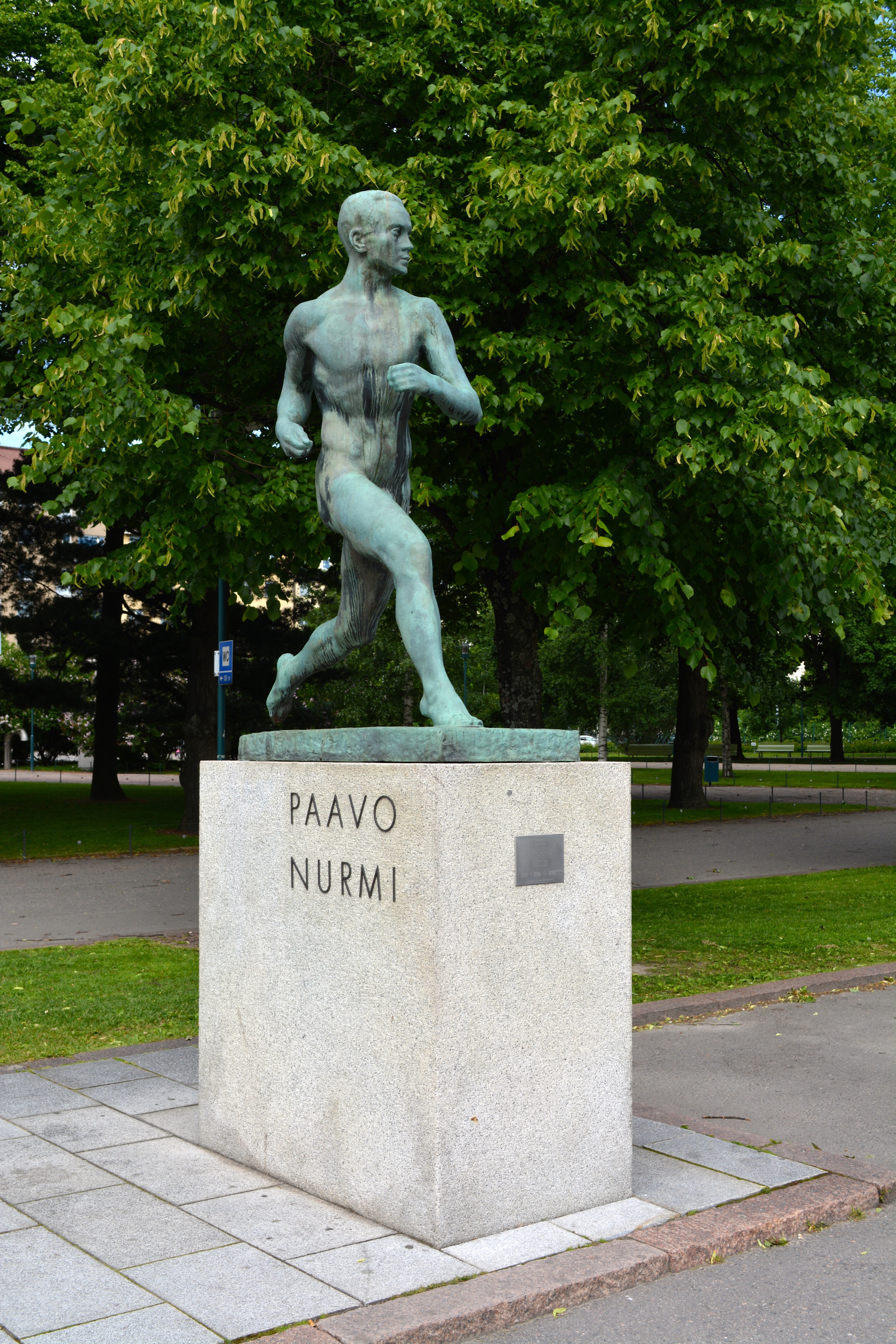 At the entrance to the Stadium there is a statue of Paavo Johannes Nurmi, a Finnish middle and long-distance runner. He was nicknamed the “Flying Finn,” as he dominated distance running in the early 20th century. Nurmi set 22 official world records at distances between 1500 metres and 20 kilometres, and won a total of nine gold and three silver medals in his twelve events in the Olympic Games. At his peak, Nurmi was undefeated at distances from 800 m upwards for 121 races. Throughout his 14-year career, he remained unbeaten in cross country events and the 10,000 m.