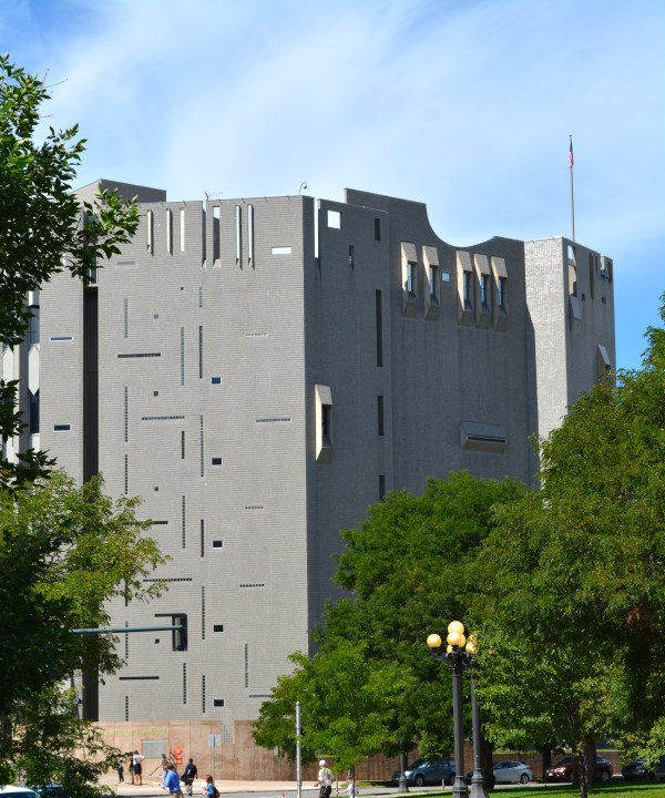 The Denver Art Museum was designed in 1971 by modernist architect Gio Ponti (reportedly one of the most important Italian architects, industrial designers, furniture designers, artists, and publishers of the twentieth century), partnered with the local Denver architectural firm of James Sudler Associates. The unique contemporary structure some have called eccentric has two connected towers clad with more than a million reflective glass tiles that shimmer in the light; with the building’s 28 sides, jaunty crenellations, and myriad slot windows it resembles a medieval fortress. With this 7-story structure, a total of 210,000 square feet of space was made available under one roof for the first time in the museum’s history.