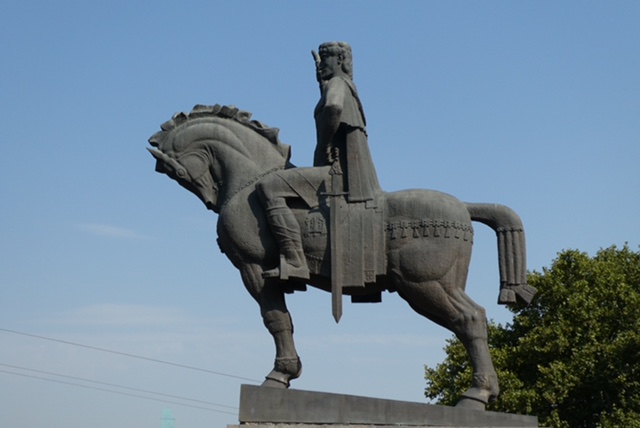 The equestrian statue of Vakhtang Gorgasali (also referred to as Vakhtang the Wolf Head) was built in 1970. It pays tribute to this King of Iberia during the 5th and early 6th centuries. He is credited with the founding of several cities, including Tbilisi, and the reorganization of the Georgian Orthodox Church, as well as the building of many churches and monasteries, including the Metekhi Church.