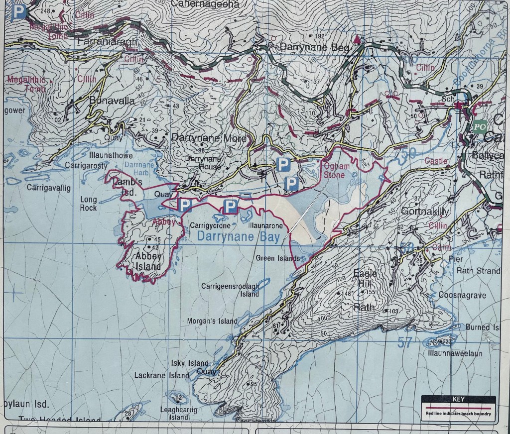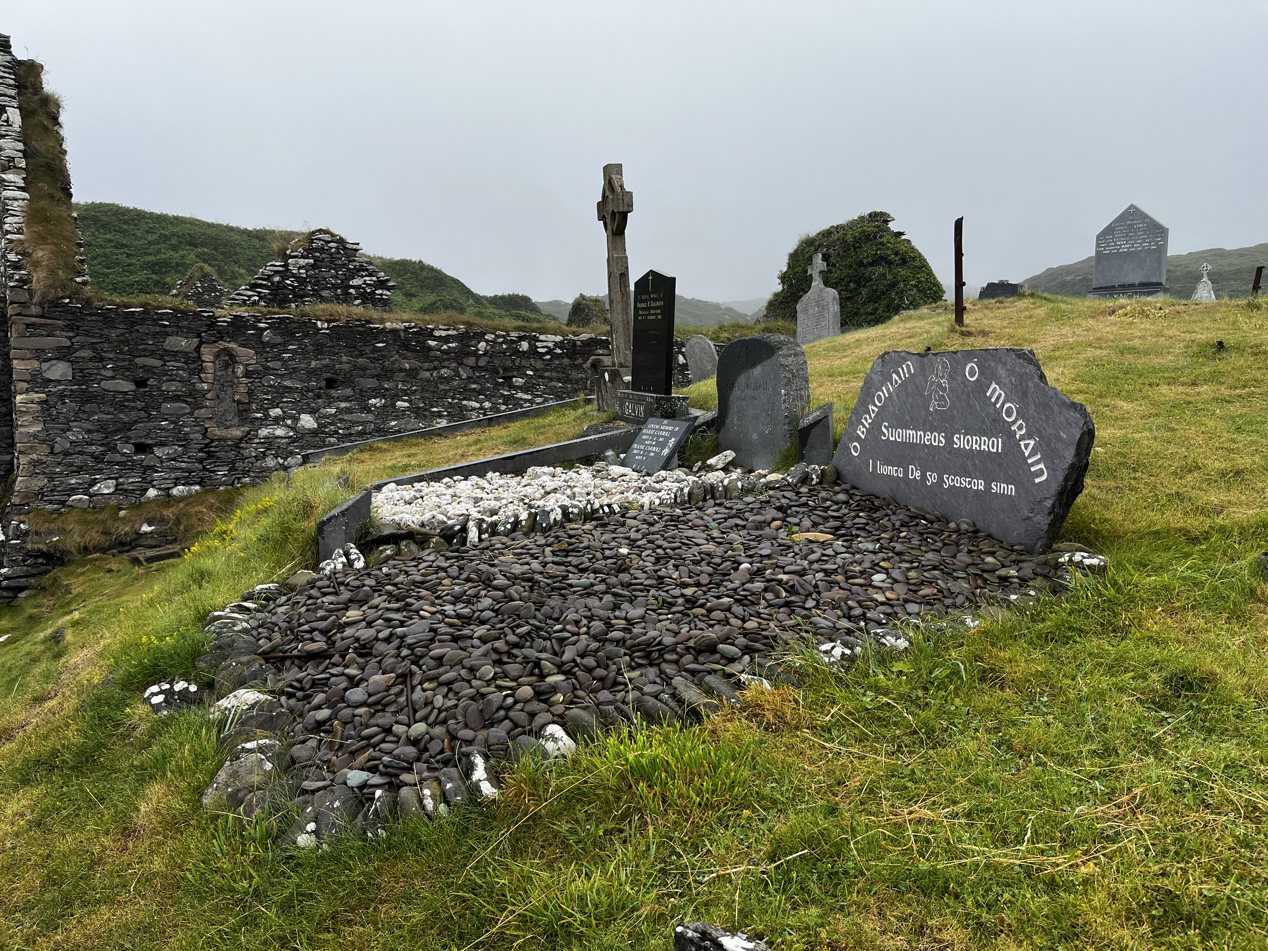 We walked through the Derrydane Abbey’s historic graveyard and a 6th century Christian monastic settlement, with its partial stone structures preserved in the hillside among the head stones of their former inhabitants.