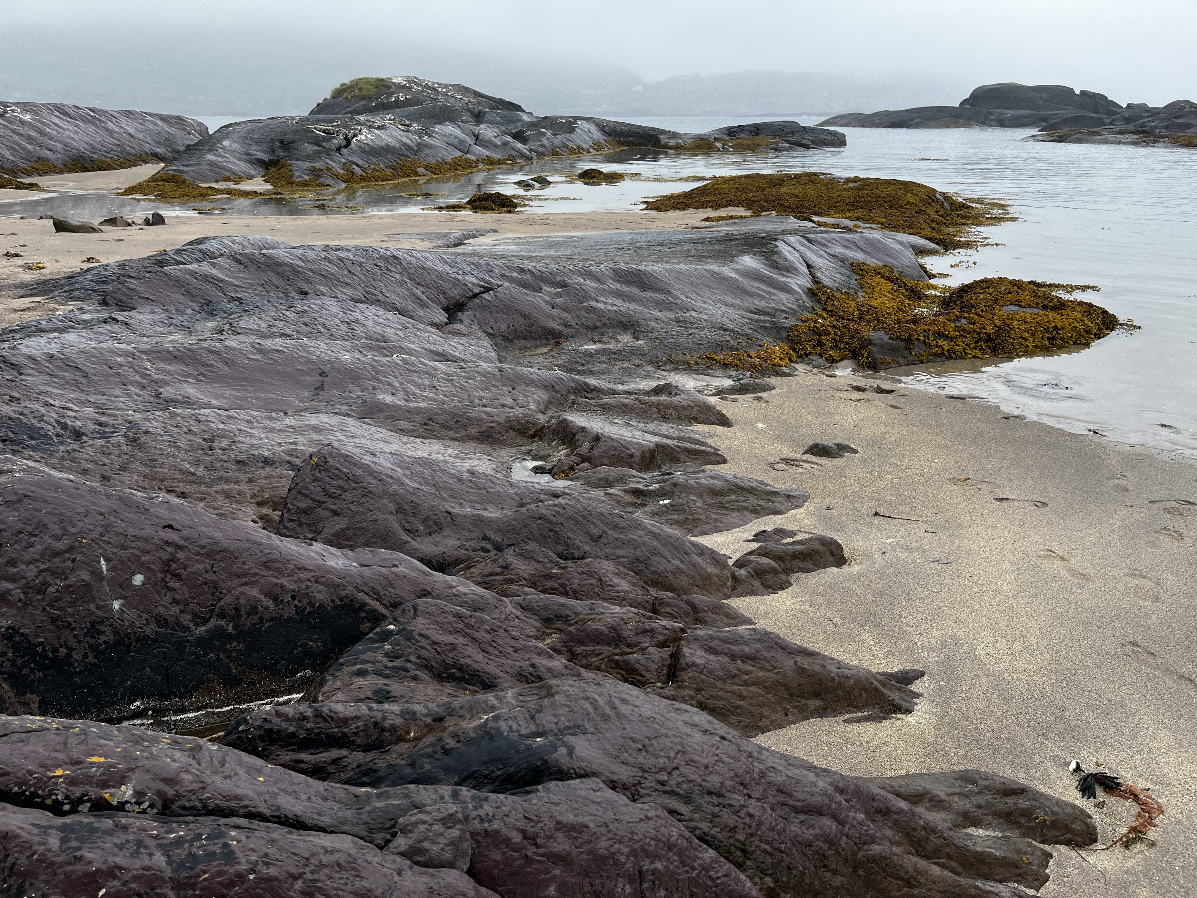 Afterwards, we continued down the mountain to meet our guide for an afternoon walk in Derrydane National Park, along the shore of Derrydane Bay. It was still misty at this point so our rain gear came in handy for the 2-hour walk. The scenery along the rocky shoreline was beautiful and our guide was very knowledgeable about the landscape and history of the region.