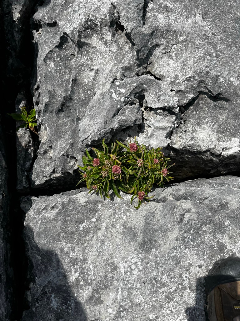 After lunch, we headed back to the coast to meet our guide for the afternoon walk on The Burren, a 15-mile field of ancient limestone. In Gaelic, the Burren means “a rocky place,” which is obviously appropriate as these photos will show.