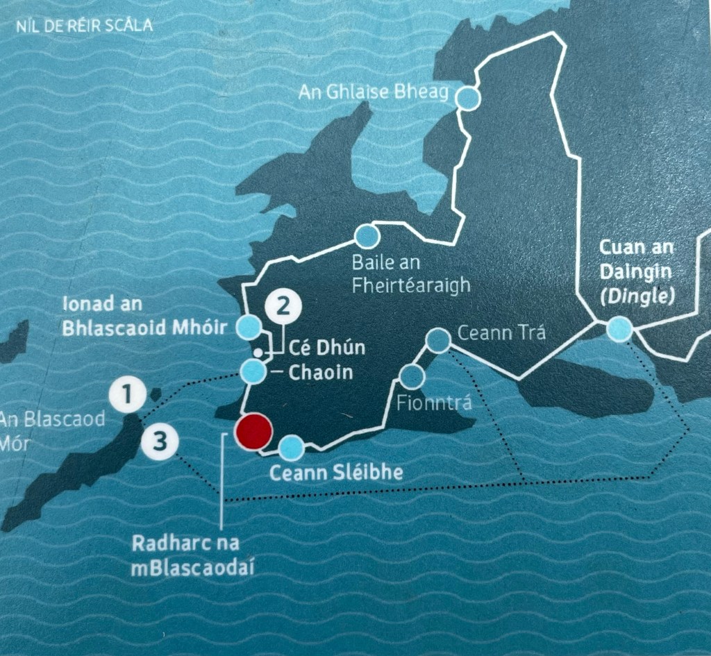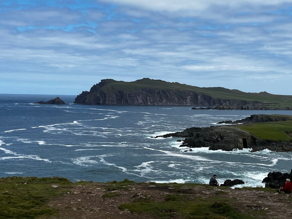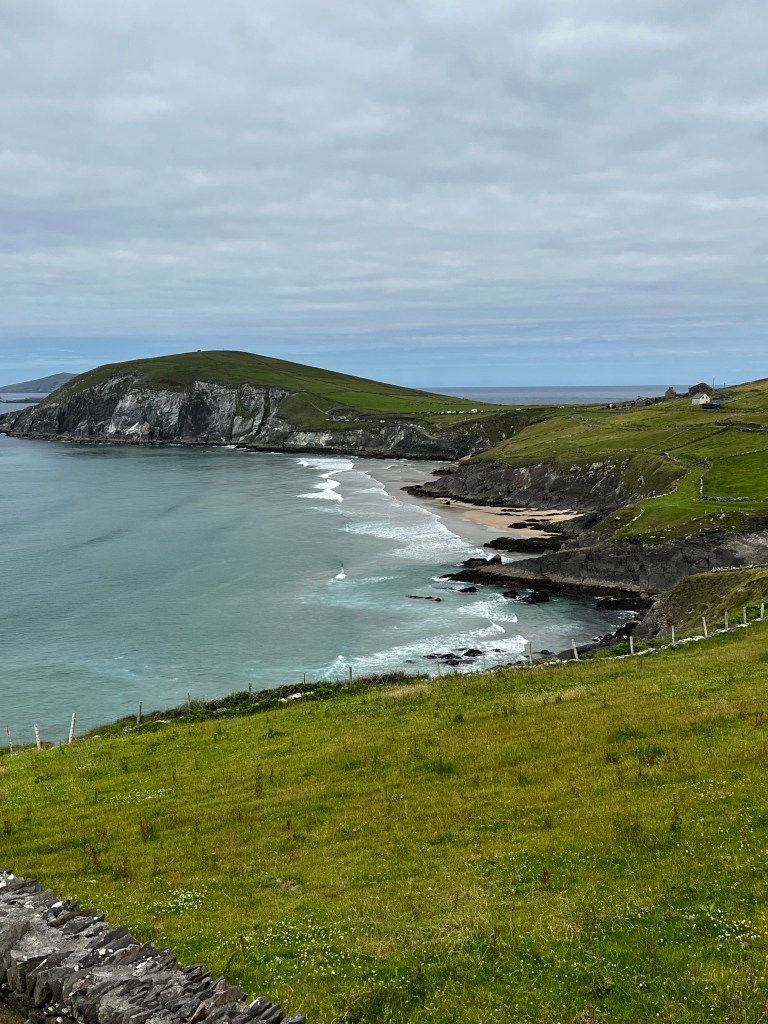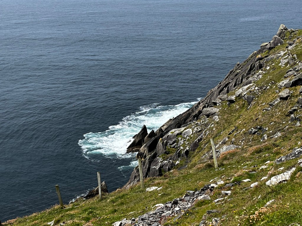 Farther up the ragged coastline the road became a narrow one-way passageway, so driving was slow and cautious, particular when a small car didn’t understand the one-way protocol and found itself crammed between the stone wall of the hillside and our van! He scooted away as soon as we inched by him. Not too much later we stopped at Ceann Sraithe, where part of the movie Ryan’s Daughter” was filmed, as well as one of the Star Wars films.