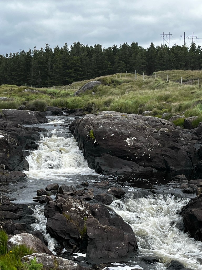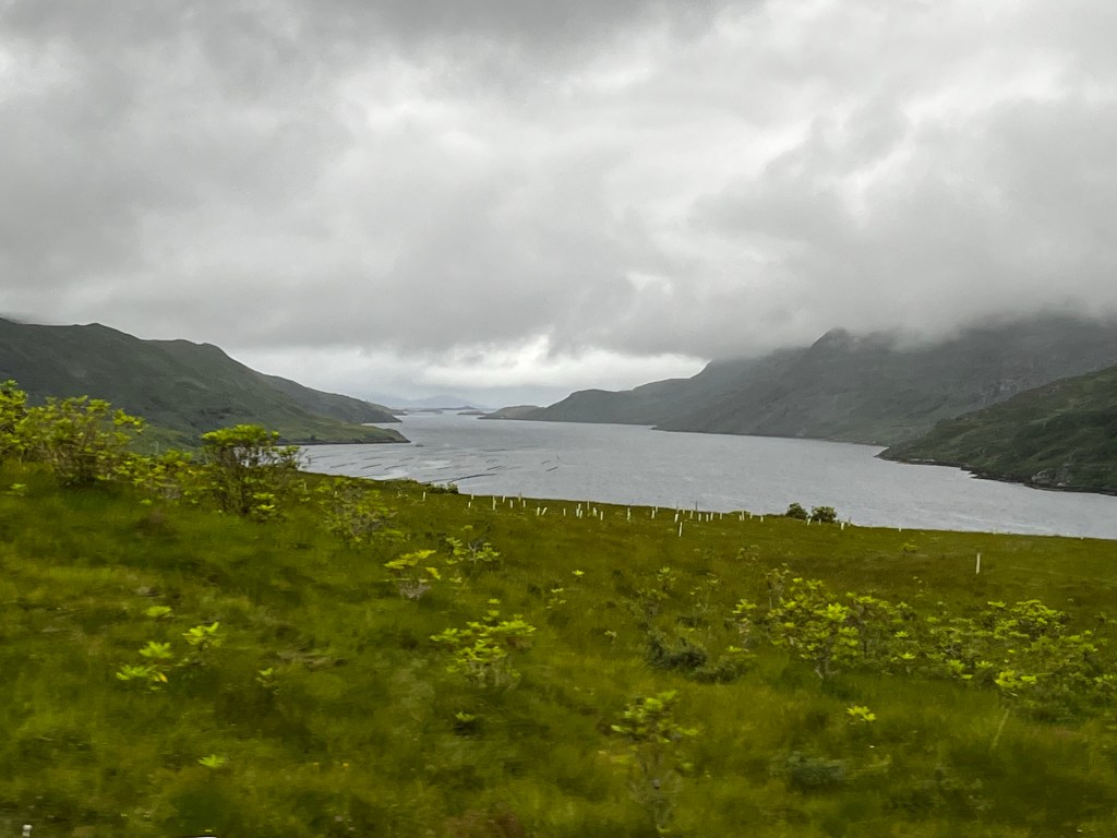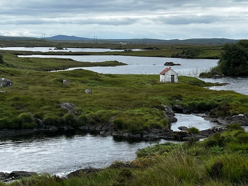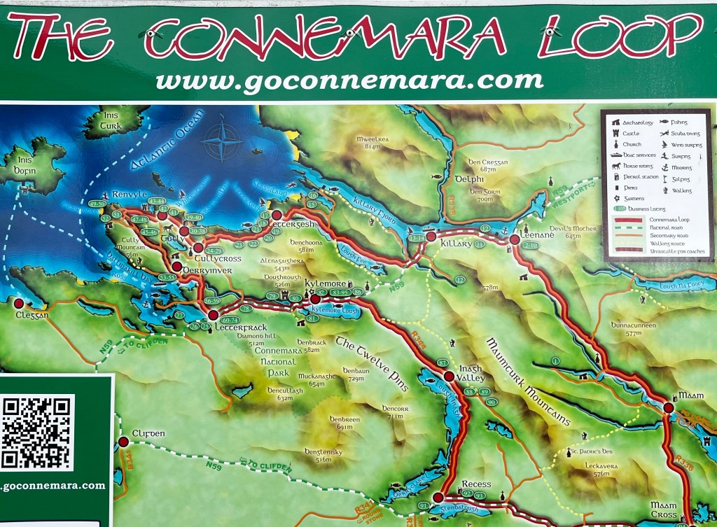 Today was an easy, but long travel day, with lots of beautiful scenery as we drove through what’s known as the wilds of Connemara (the lowlands of bogs, heathlands and lakes), as we head up into the Maumturk Mountains. Small fishing villages west of Galway and larger communities farther up into the mountains (including the villages of Oughterard, Maam Cross, and Recess provide ample opportunities to take in the views, break for coffee or lunch or browse shops in the larger towns. Fishing, cycling, hiking, and other recreation tourism is coming back, and tour buses, large and small are evidence of the area’s popularity.
